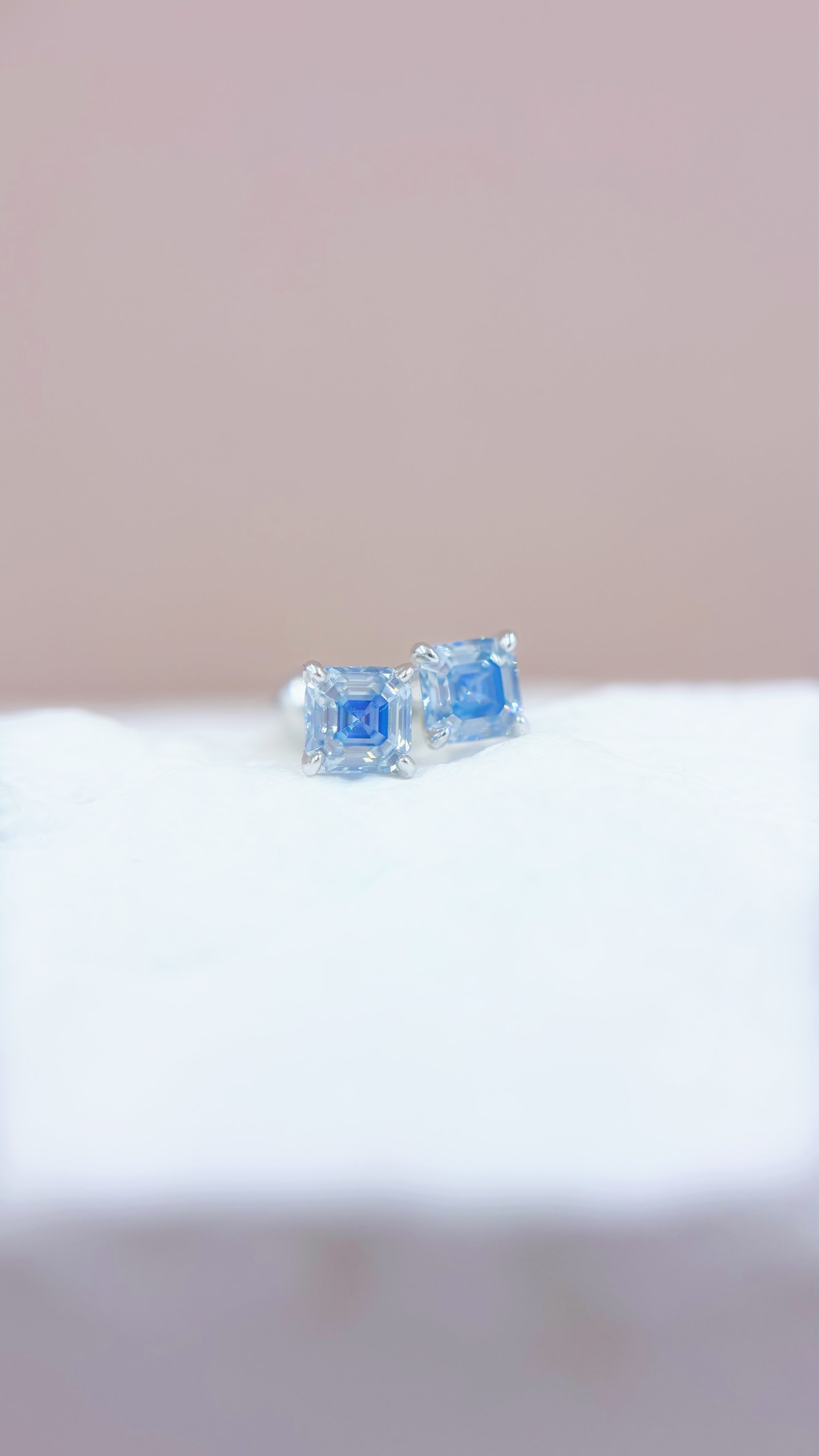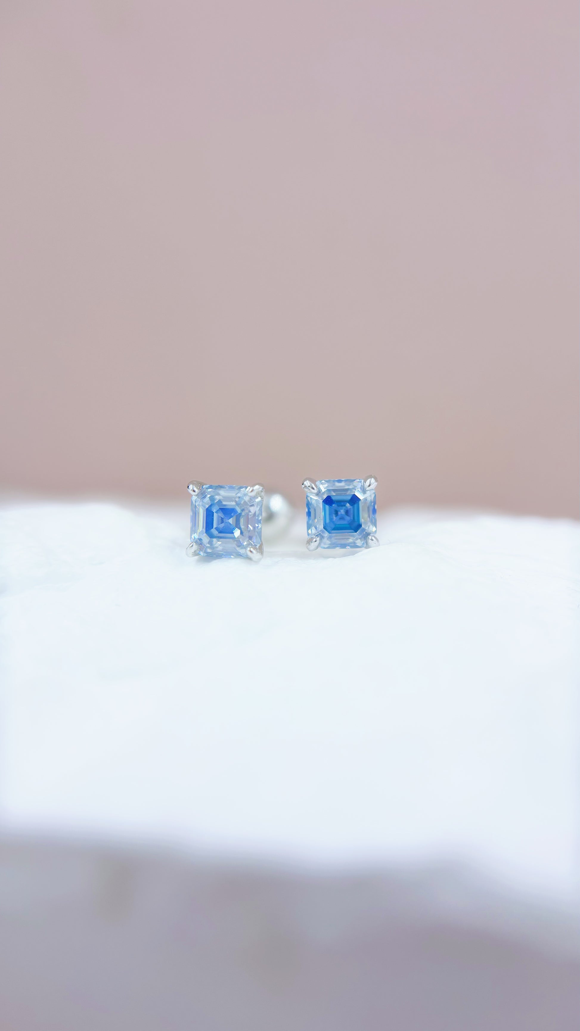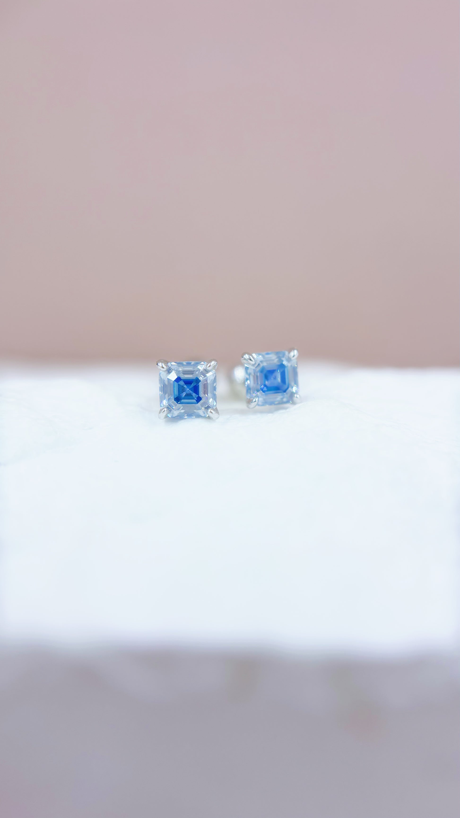 Earrings | 0.5 carat | Vivid Blue Asscher
