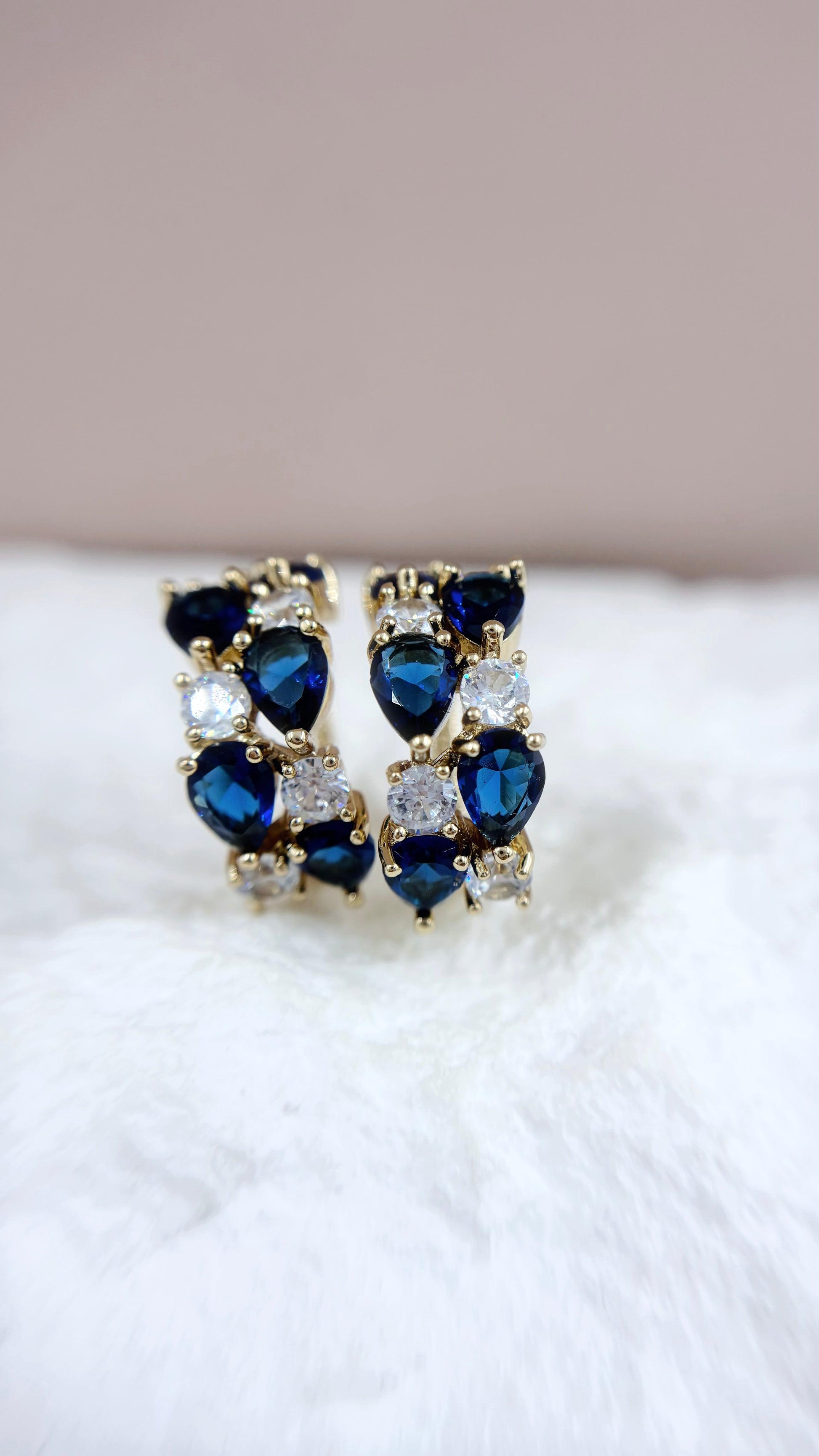 Sapphire Blue + White gems on 18K yellow gold vermeil.