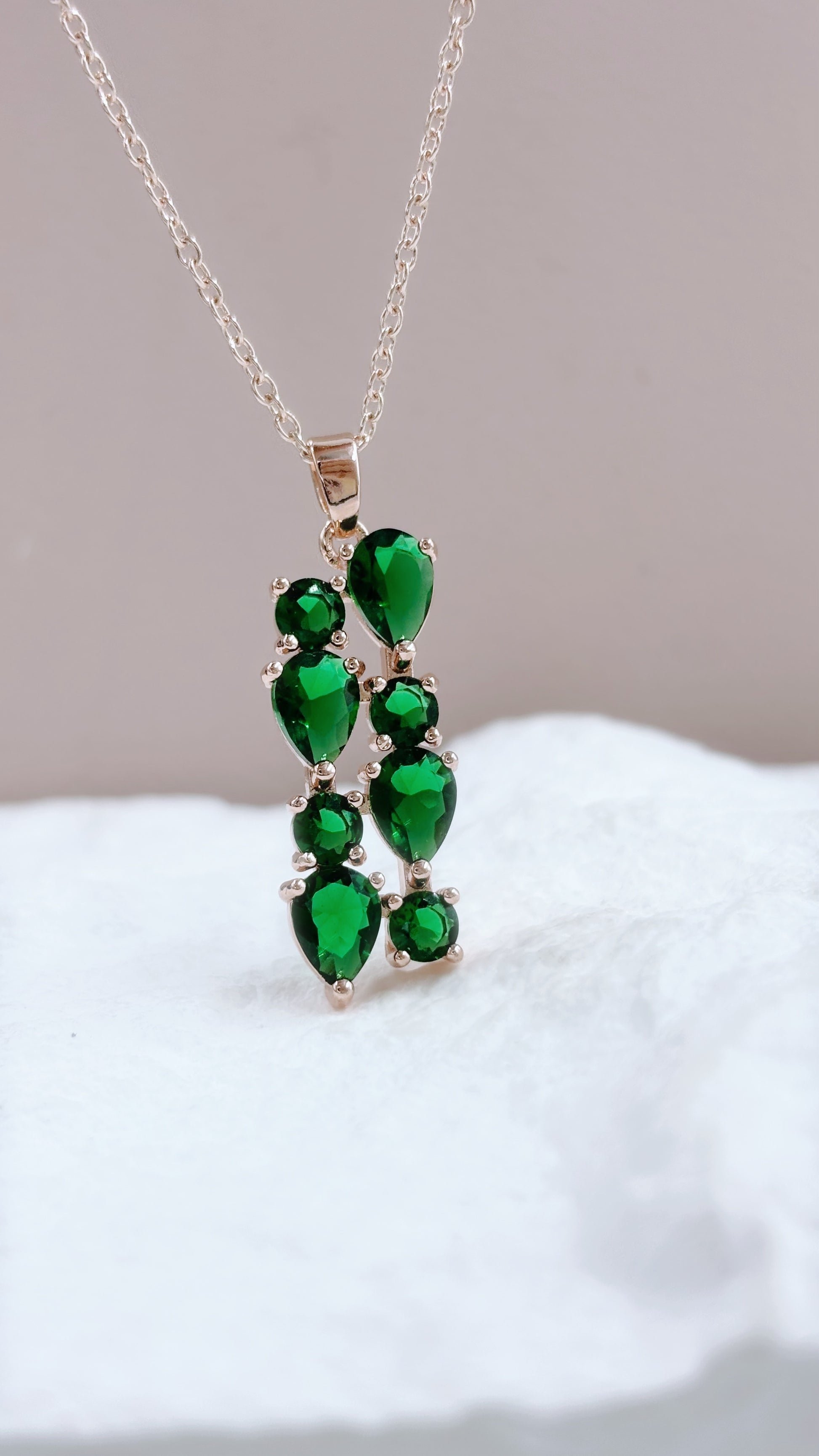 Multi Gem Necklace | Emerald Green on Gold